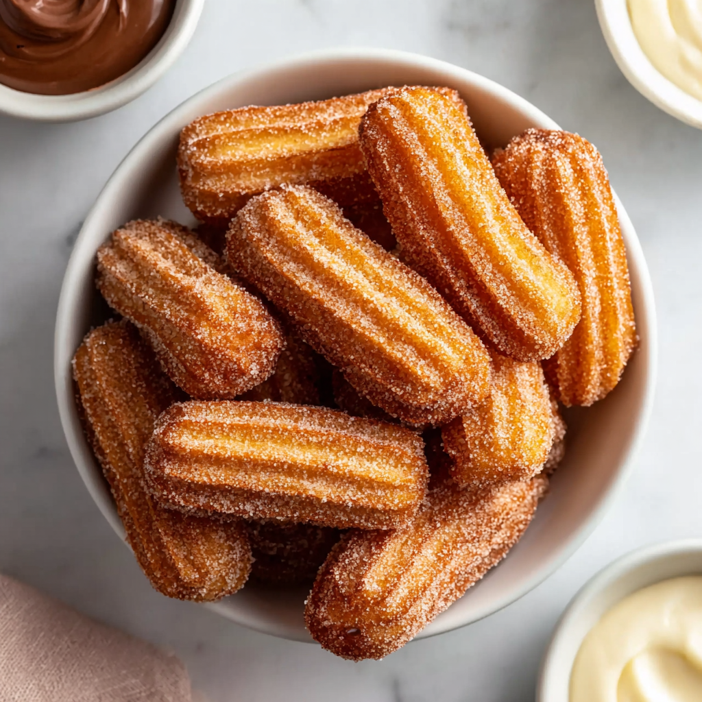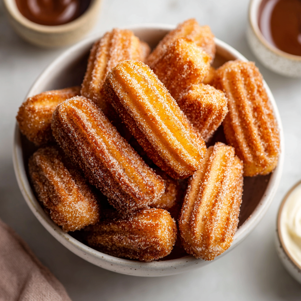 Bite-sized churros baked to golden perfection, coated in buttery cinnamon sugar for a warm, sweet treat. Quick, fun, and less messy than traditional fried churros—perfect for snacks or dessert.