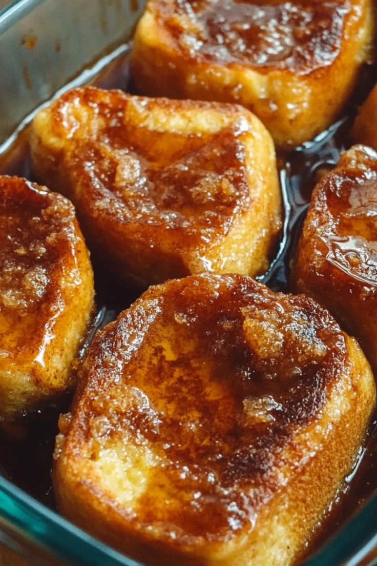 - Assemble and Bake:Pour the caramel mixture over the soaked bread. Bake uncovered for 40 minutes until golden and set.