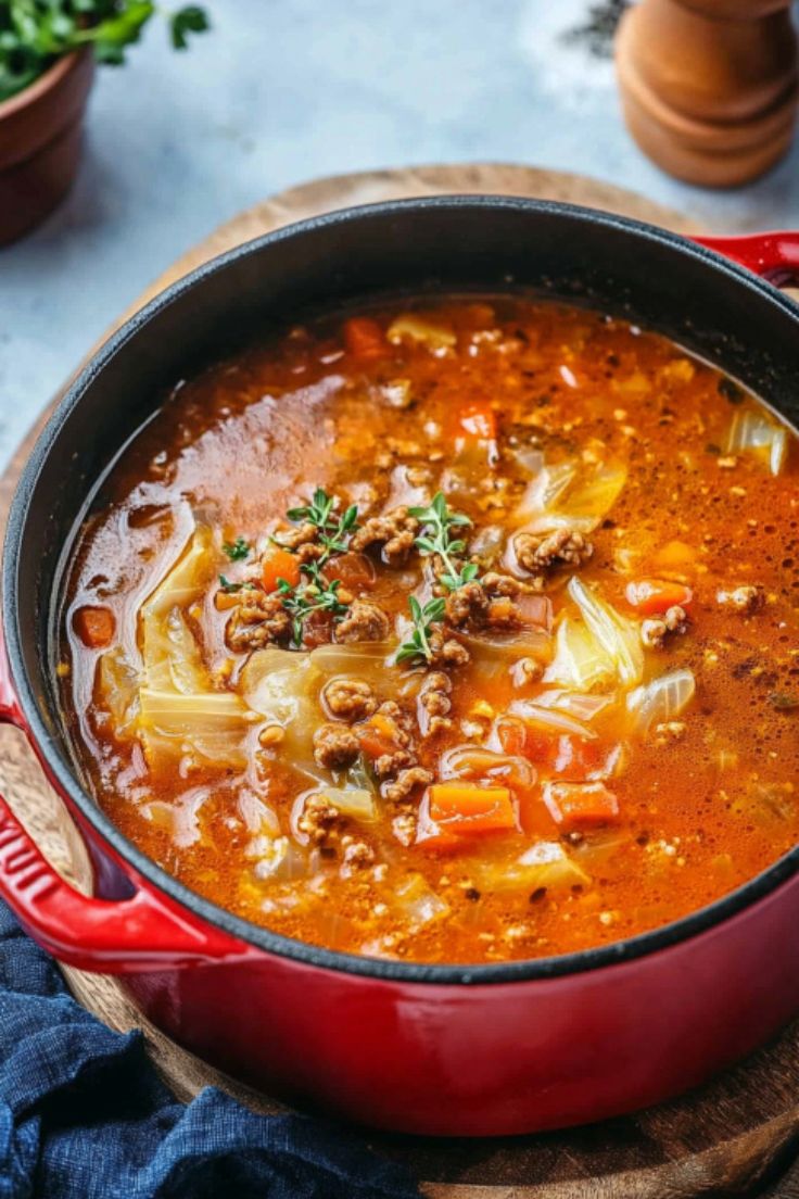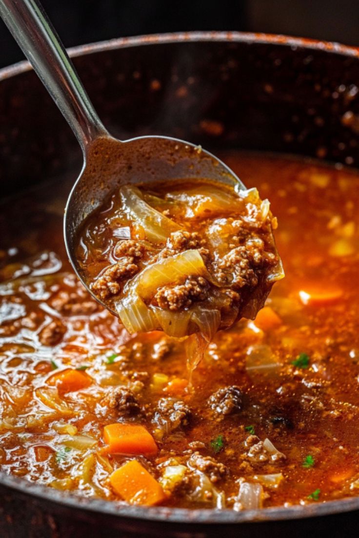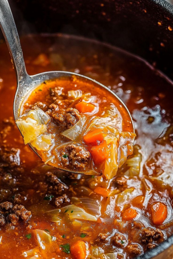 This hearty and comforting soup brings all the flavors of classic cabbage rolls in an easy, one-pot meal. Packed with ground beef, tender cabbage, rice, and a rich tomato broth, it's a warm and satisfying dish perfect for busy nights. Enjoy all the coziness of stuffed cabbage rolls with minimal effort!
