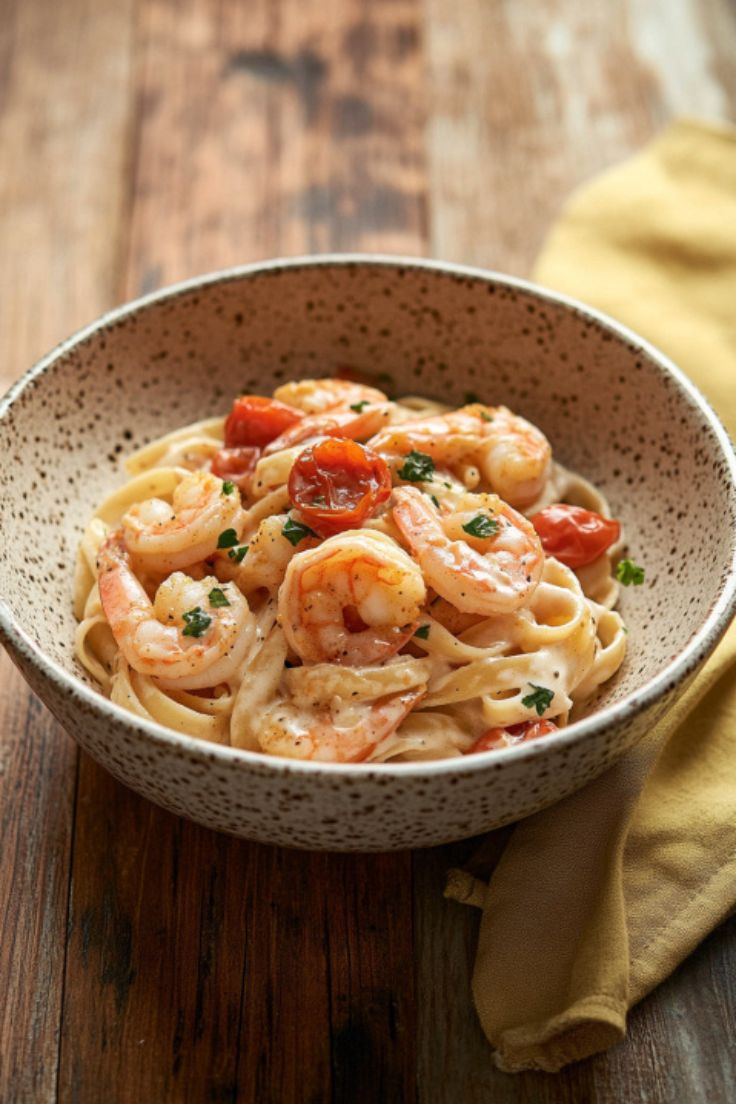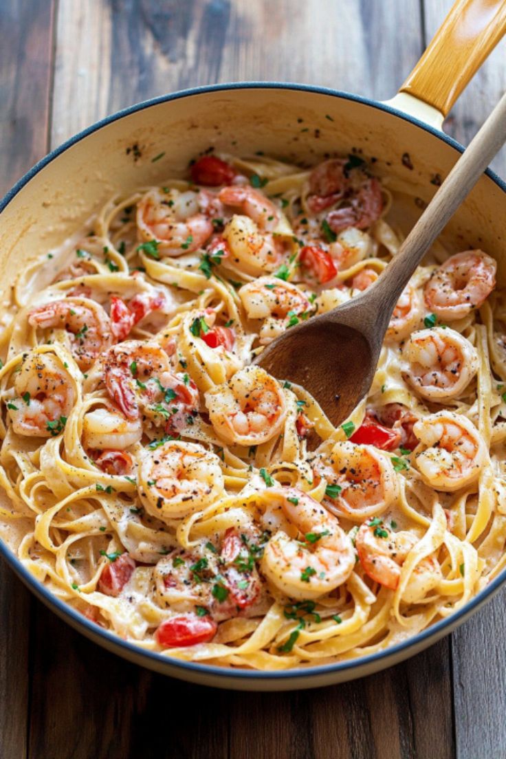 • Fettuccine Noodles – The classic pasta choice for this dish, carrying the creamy sauce and shrimp.