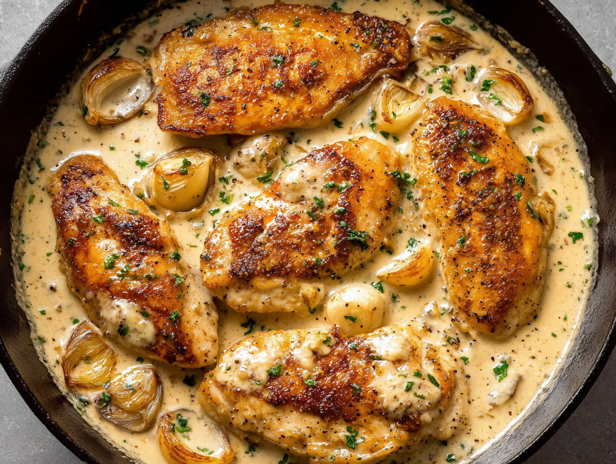 Creamy garlic chicken. Golden seared cutlets. A skillet full of bubbling, silky sauce loaded with whole cloves of garlic that turn sweet and mellow as …