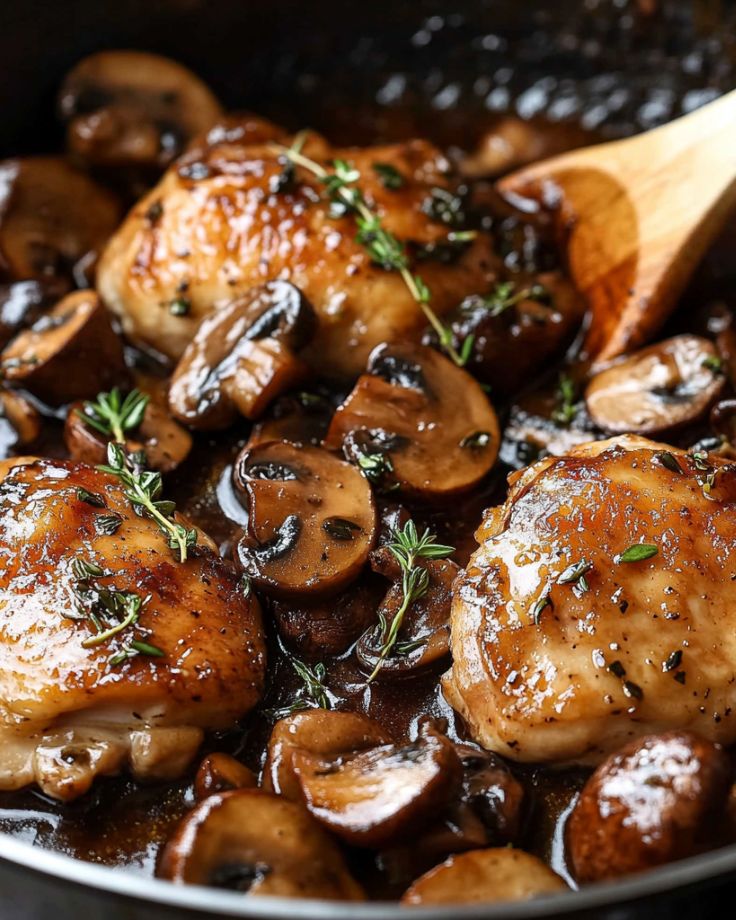 A classic Italian-American dish featuring golden pan-fried chicken cutlets and mushrooms in a rich, flavorful Marsala wine sauce.