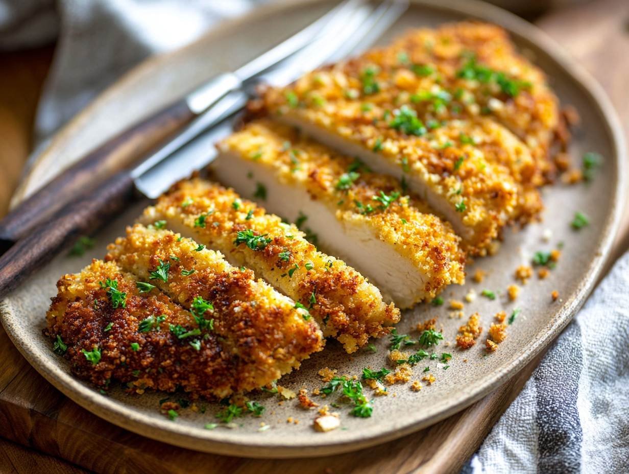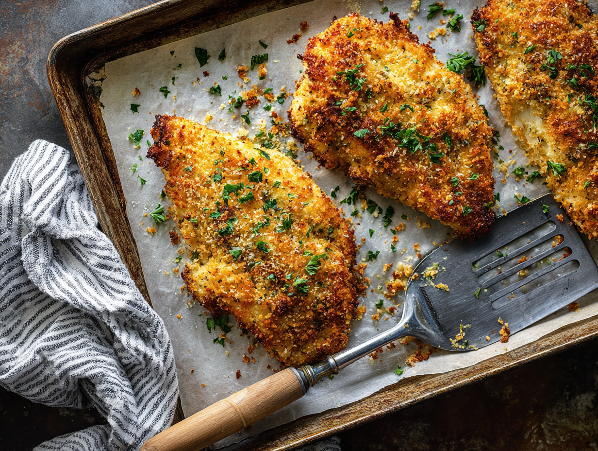 Yes. Don’t skip this. Even thickness = even cooking. No dry edges. No undercooked centers. Just perfectly juicy chicken all the way through. Worth the extra minute. - How do I get that ultra-crispy crust in the oven?