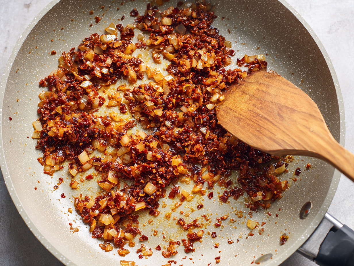 - Yellow Onion – Finely diced onion creates the base layer of flavor and adds natural sweetness as it cooks down.
