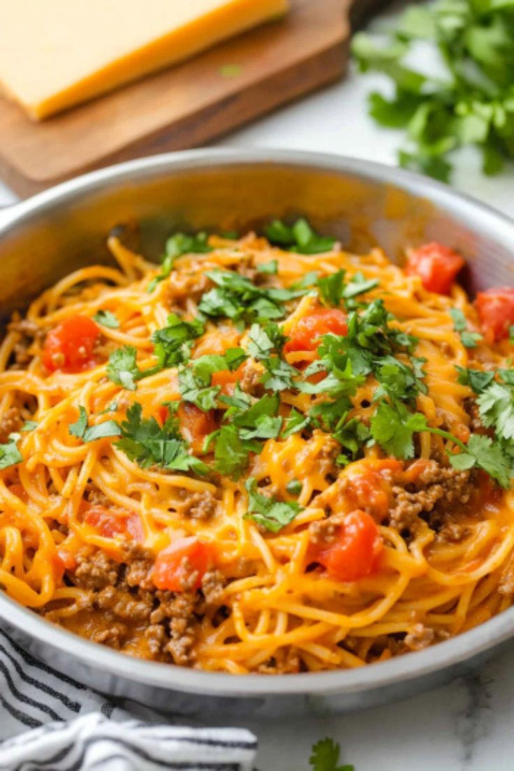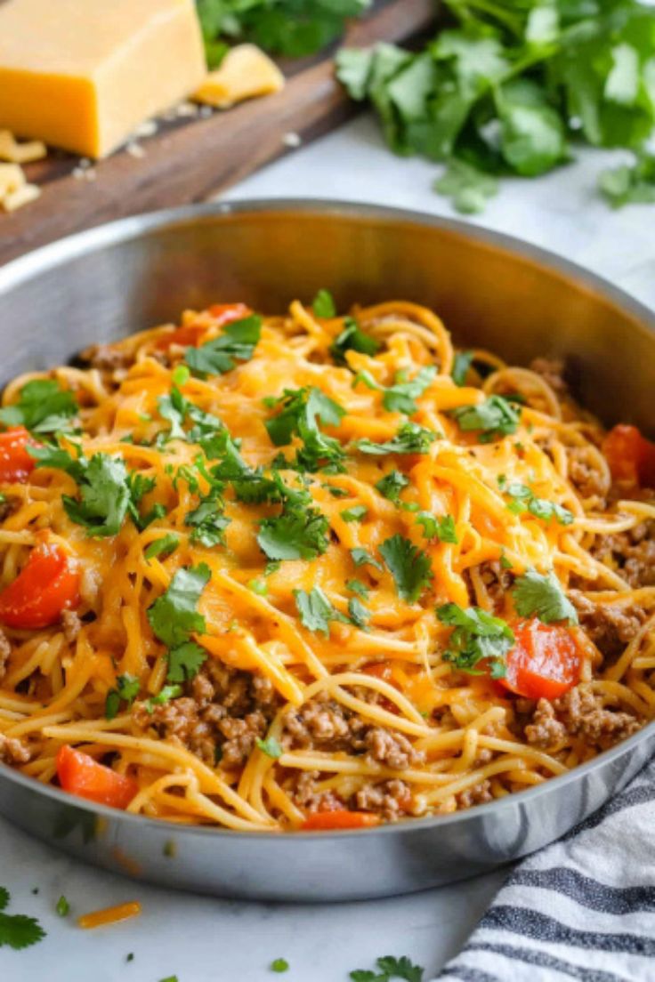 Taco Spaghetti is a fun and flavorful dish that combines two favorite meals: tacos and spaghetti. This easy, one-pan recipe comes together in less than 30 minutes, offering a delicious blend of Italian and Mexican flavors.