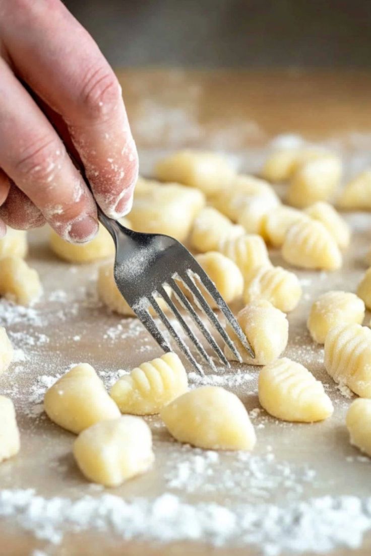- Roll each piece over a fork or gnocchi paddle to create the characteristic ridges.
