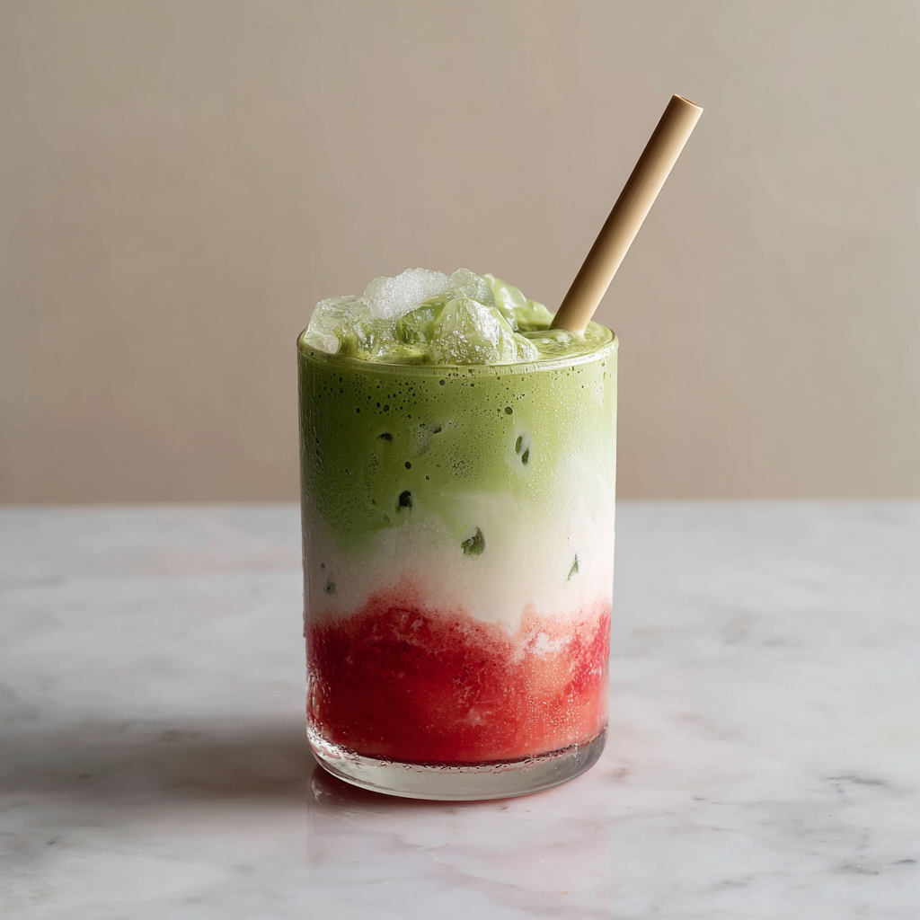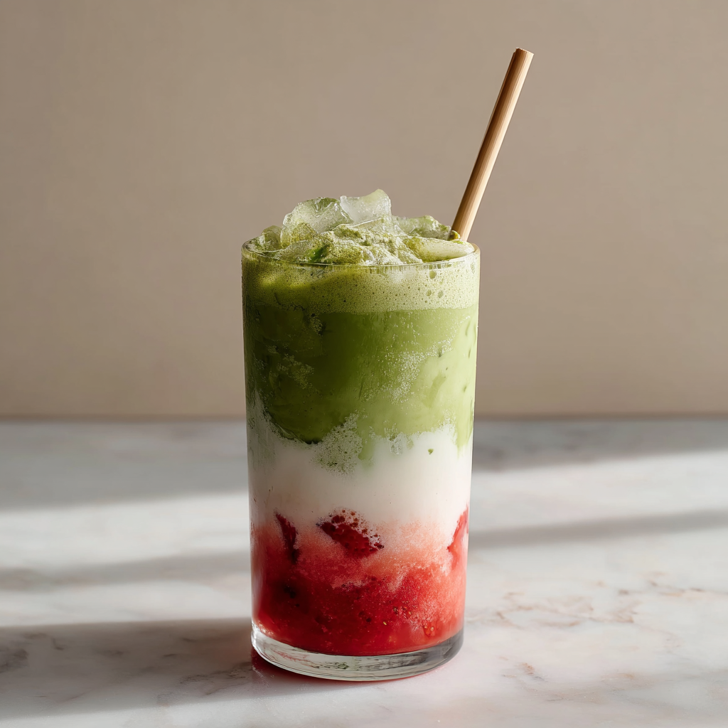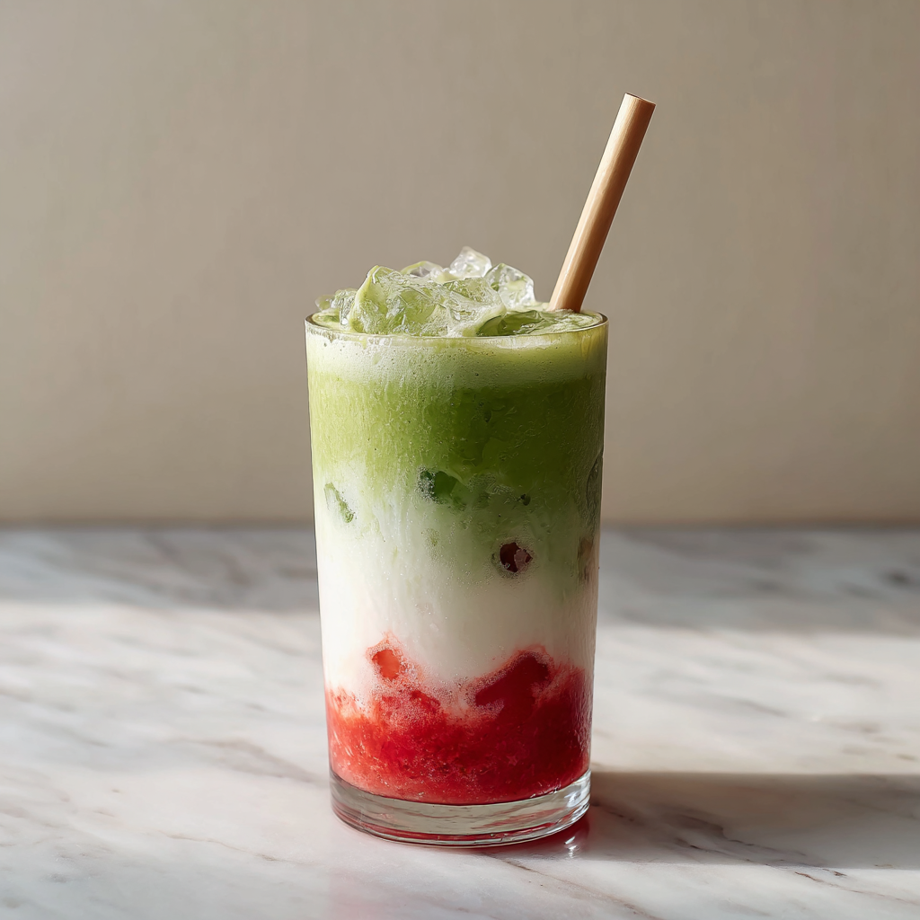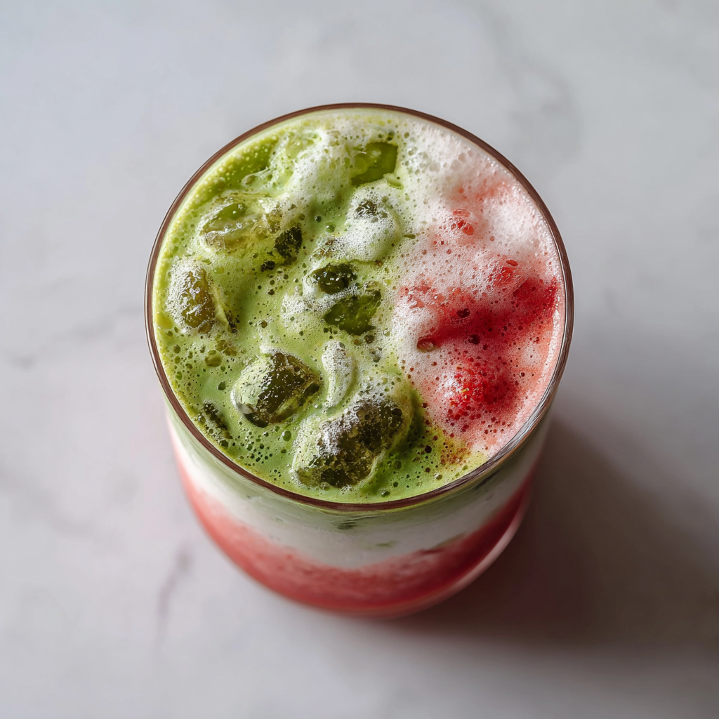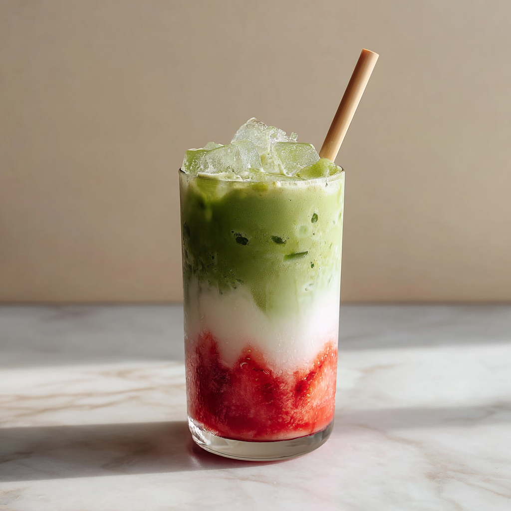 Iced Strawberry Matcha Latte with Coconut Cream
