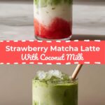 Easy strawberry matcha latte recipe with coconut milk. This layered aesthetic drink is refreshing, dairy free, and perfect for summer mornings.