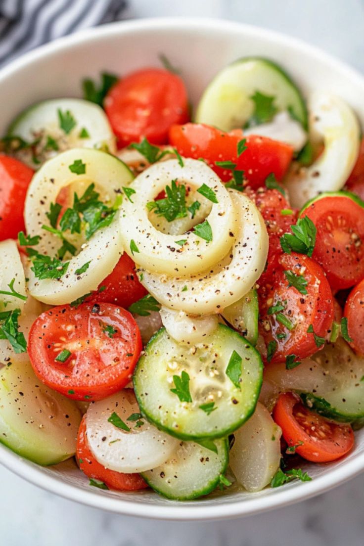 Keyword: Marinated Cucumber, Tomato, and Onion Salad