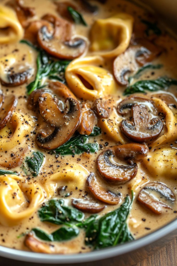 One-Pot Creamy Mushroom Tortellini with Spinach