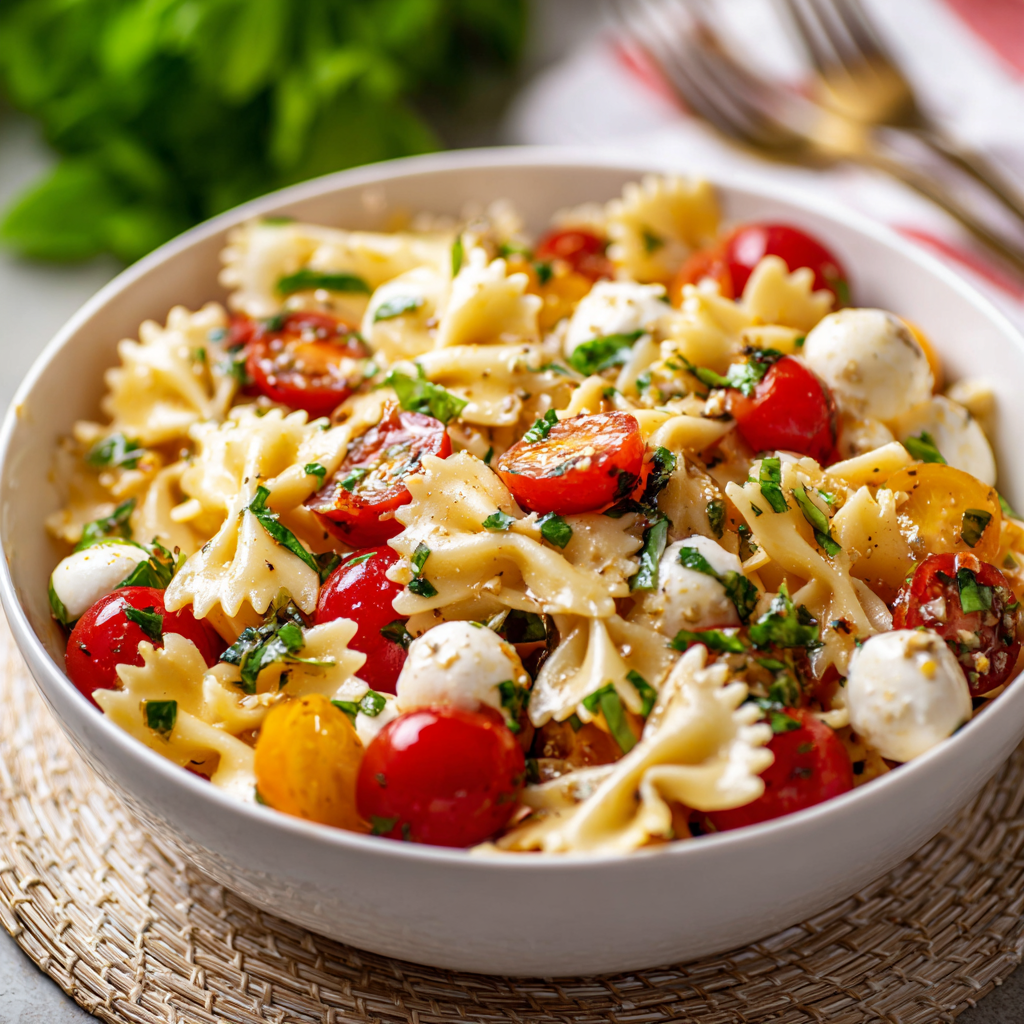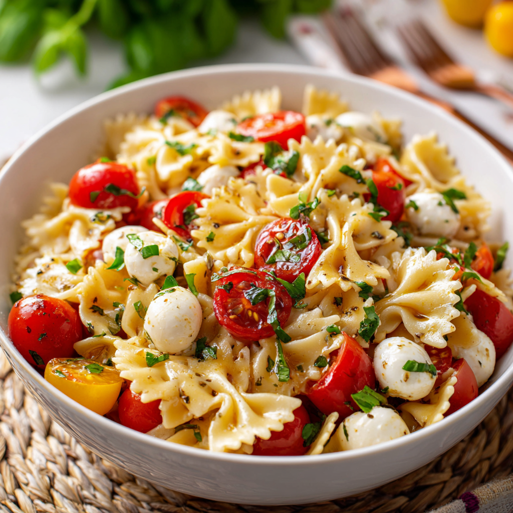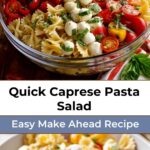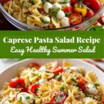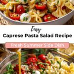 This Caprese Pasta Salad is loaded with juicy tomatoes, creamy mozzarella, and fresh basil,