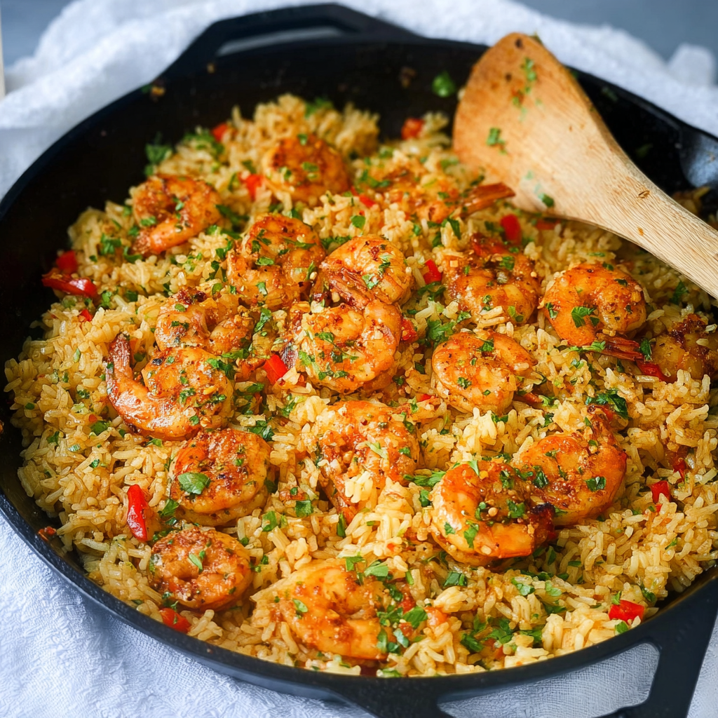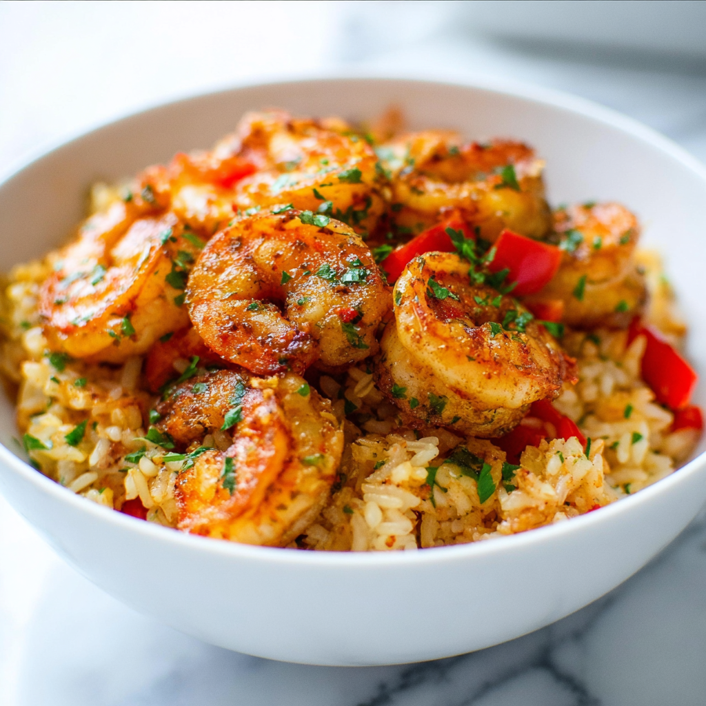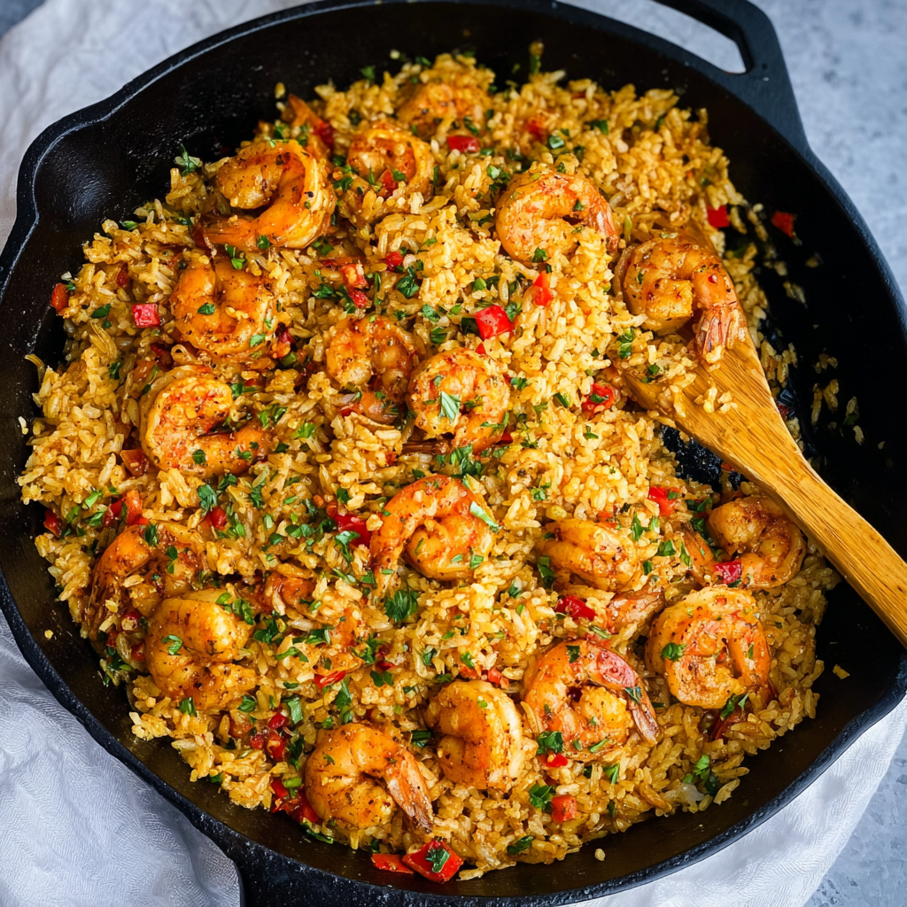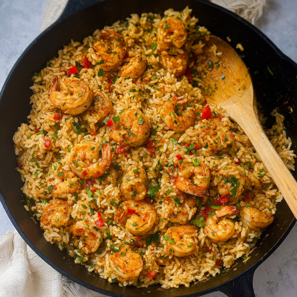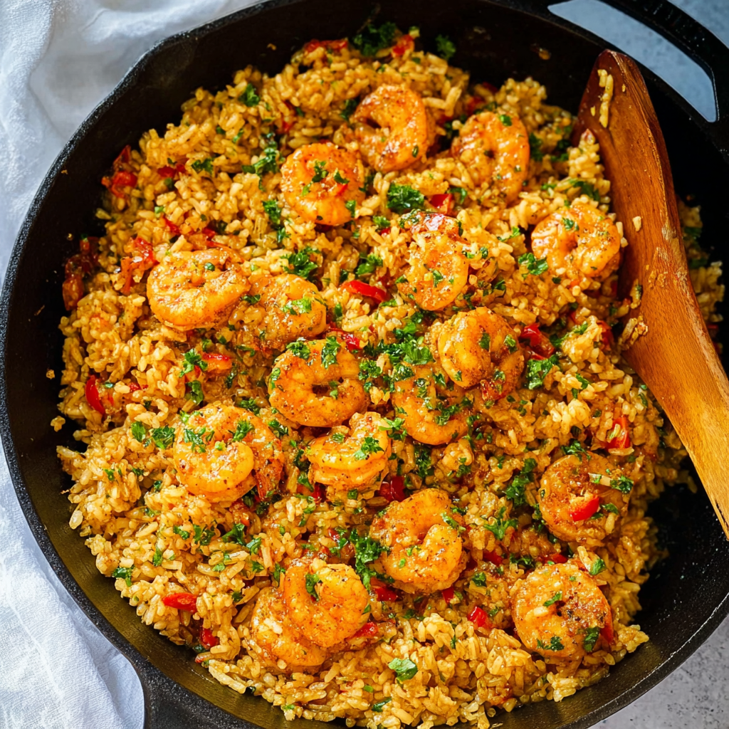 It’s a one-pan wonder where boldly seasoned shrimp, buttery rice, and sweet peppers come together.
