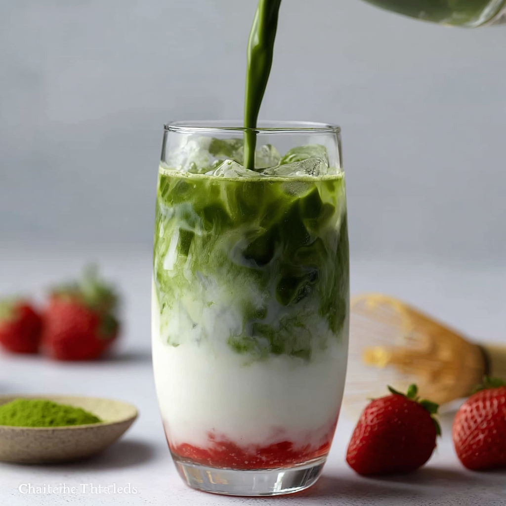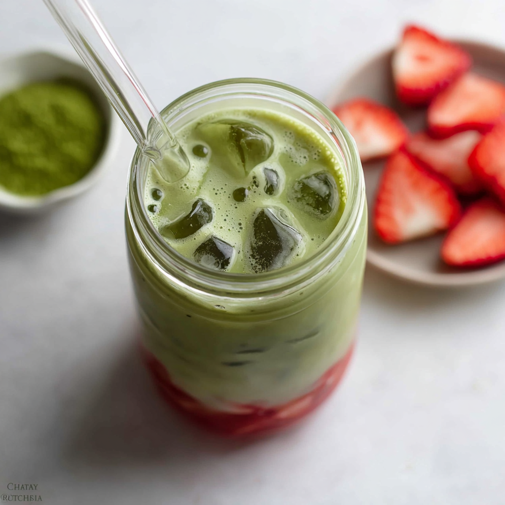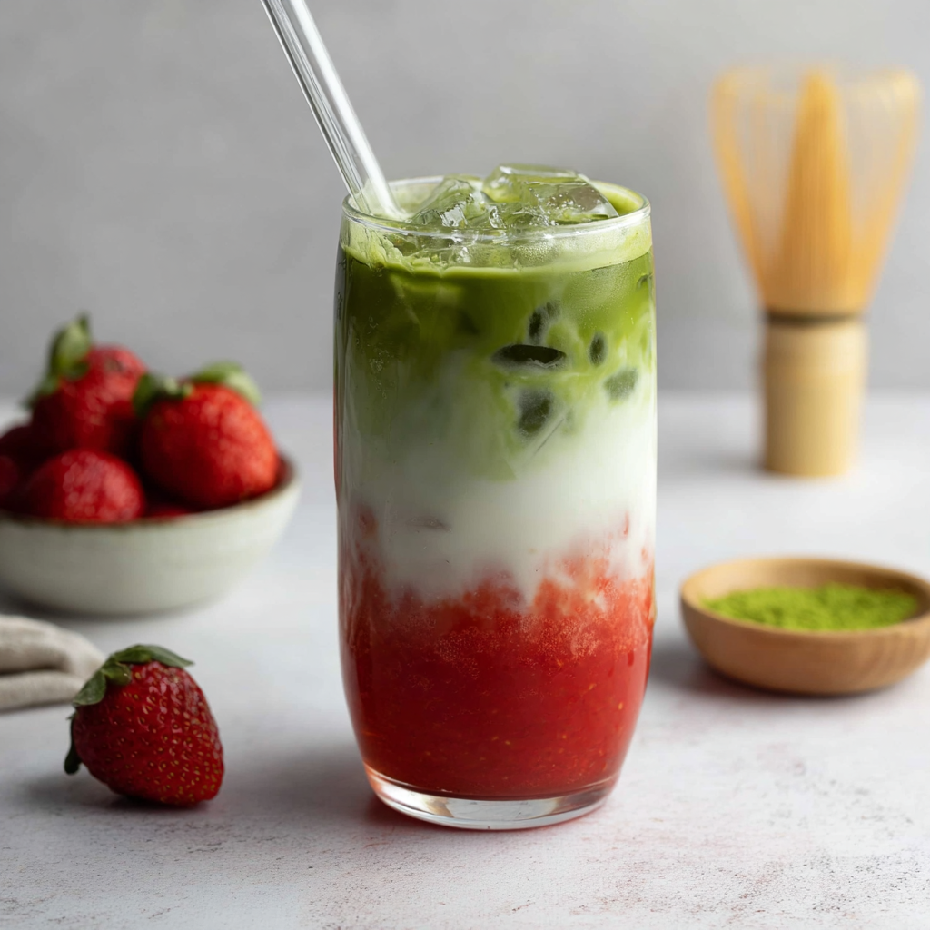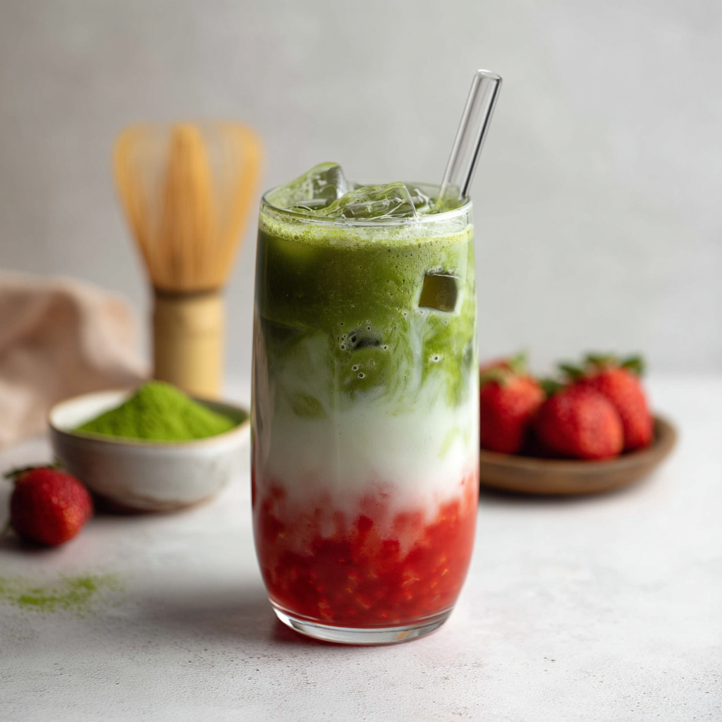 A vibrant iced drink that combines fruity sweetness with smooth, earthy matcha. This simple recipe comes together in minutes and creates a beautifully layered beverage that’s both refreshing and satisfying.