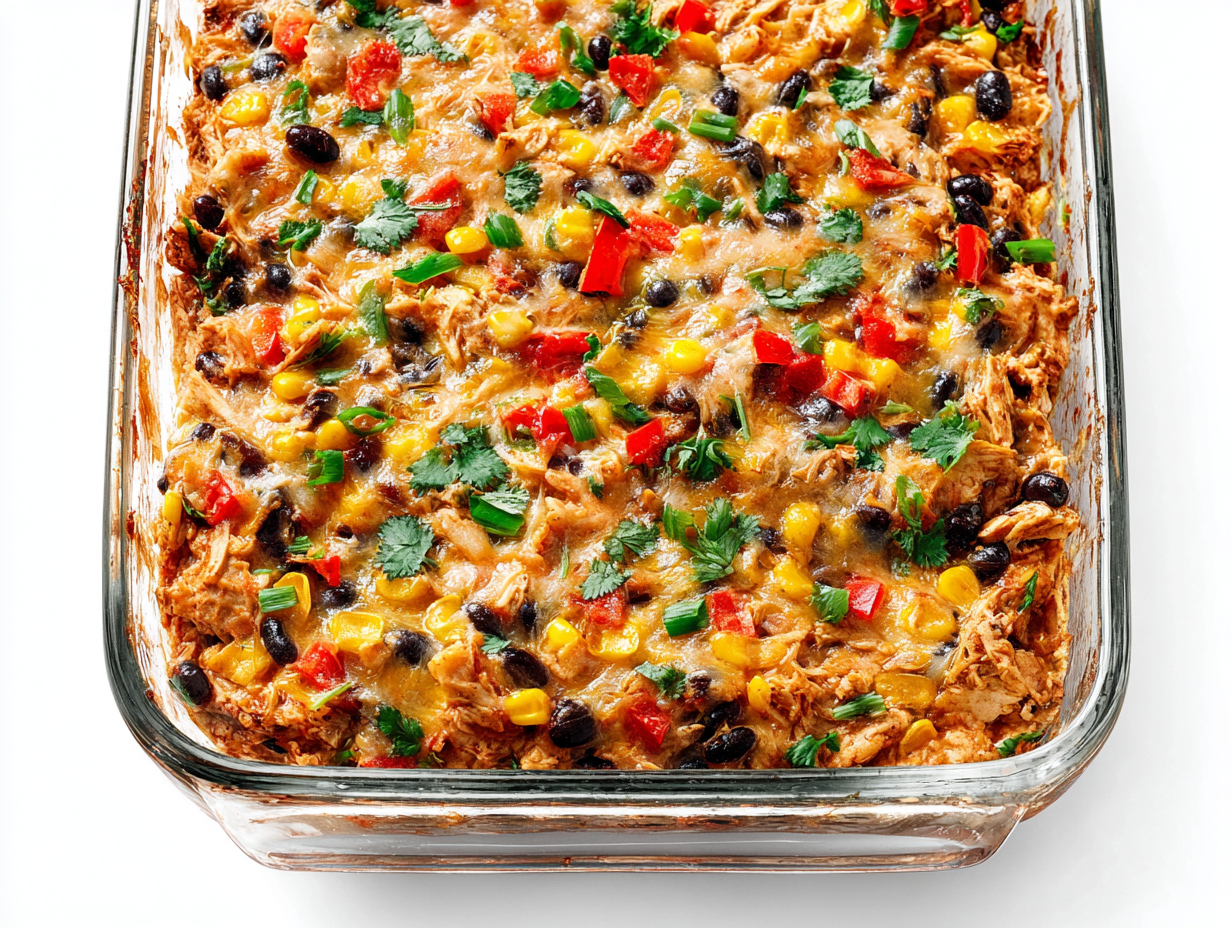 Absolutely. Taco seasoning works great, or you can use a simple mix of chili powder, cumin, paprika, garlic powder, and salt. - What toppings taste best with this casserole?
